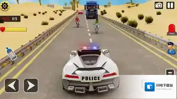 2、3D逼真画质呈现:采用先进3D技术打造城市街道、荒野赛道等场景,警车细节与坡道特效细腻真实,带来沉浸式视觉享受。