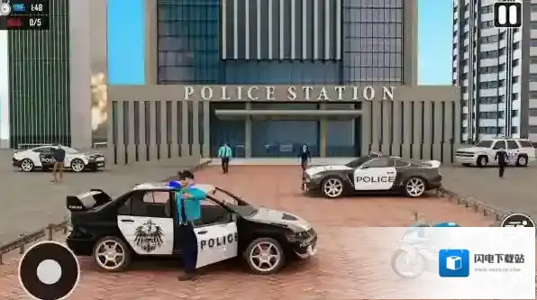 1、在警察局(POLICE STATION)场景,靠近警车,与车辆互动(如上车),选择警车开启巡逻、执法任务,熟悉游戏中的警务操作流程。