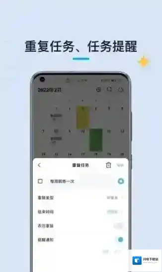 重要的纪念日、信用卡还款、学生的课程等可以设置重复任务显示在日历上,还可以通过微信提醒