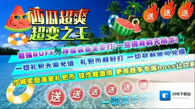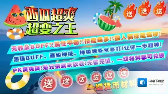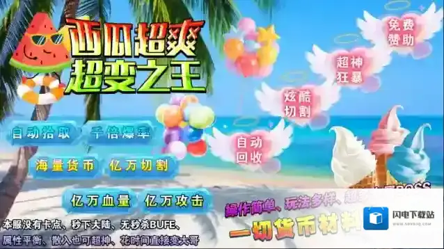 西瓜超爽超变之王,195神器超变版本,上线直接免费获得群体切割、自动回收等超爽功能!本服没有卡点、秒下大陆,无秒杀BUFE,属性平衡,散人也可超神,花时间直接变大哥!游戏内所有的货币全部可以通过打怪获得,一切货币材料刷到爆!亿万切割、亿万血量、亿万攻击、千倍爆率等超爽数值任你体验,人人皆可超神!