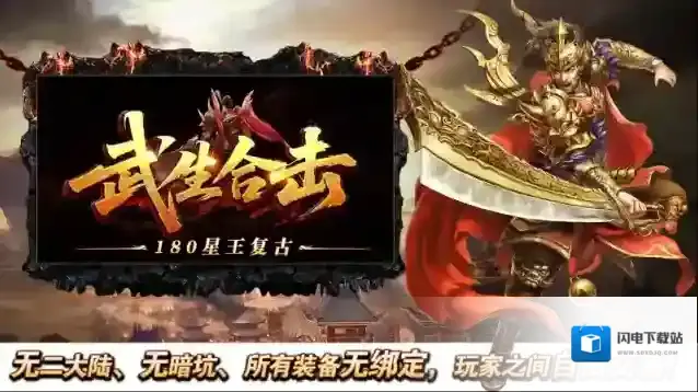 武生合击,180三职业特色合击版本,打怪就送VIP,魔龙教主爆一切!本服做到了真正的三职业平衡,战、法、道各有各的特色,都是不可替代的存在!钓鱼活动、跑酷活动、送宝树妖、护宝舰队等惊喜开区活动不间断放松,大量元宝、材料、装备和经验奖励领到你手软!游戏中一切装备全靠打就能获得,魔龙教主爆一切,并且怪物血量越高,爆率就会越高!