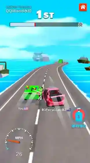 5、比赛中,点击屏幕即可加速前进,拖动即可左右移动。