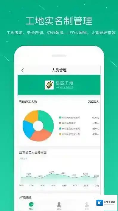 工地考勤:严密的工地考勤系统,数据实时上传至云服务器,提供精确的工人出工信息,减少相关劳资纠纷的发生。